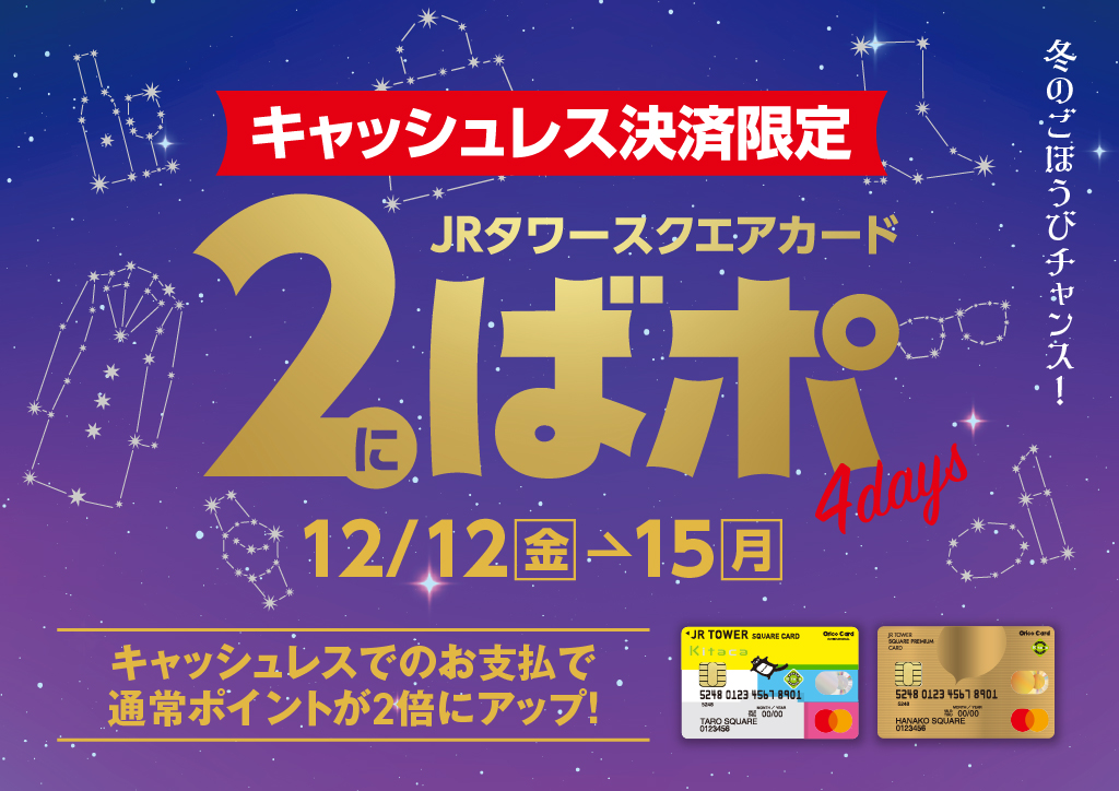キャッシュレス決済限定でJRタワースクエアカードのポイントがいつもの2倍にアップ!